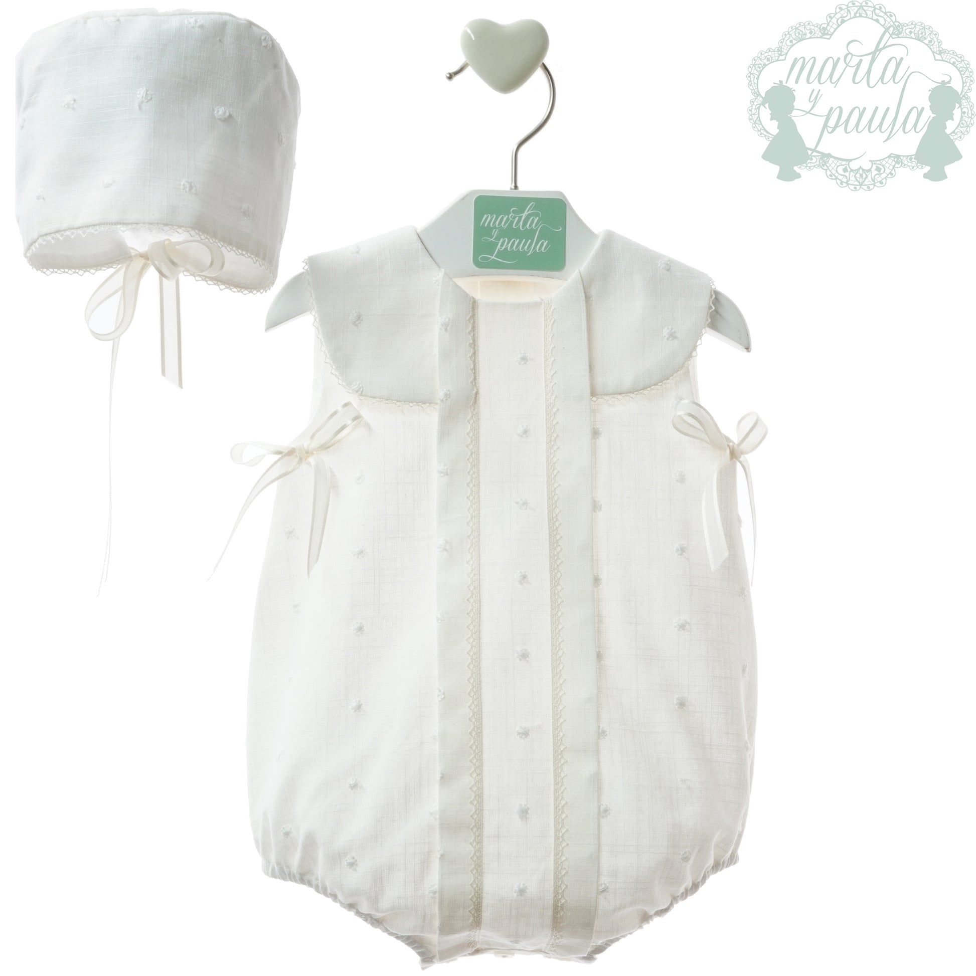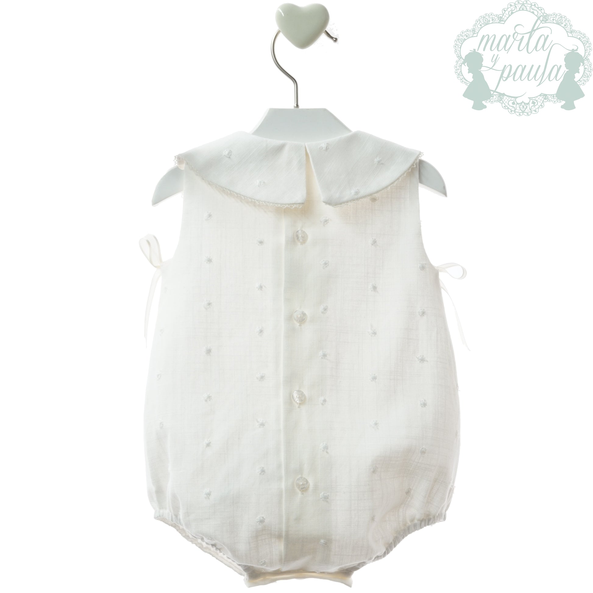 Pelele con topito bordado y cuello babero redondo.