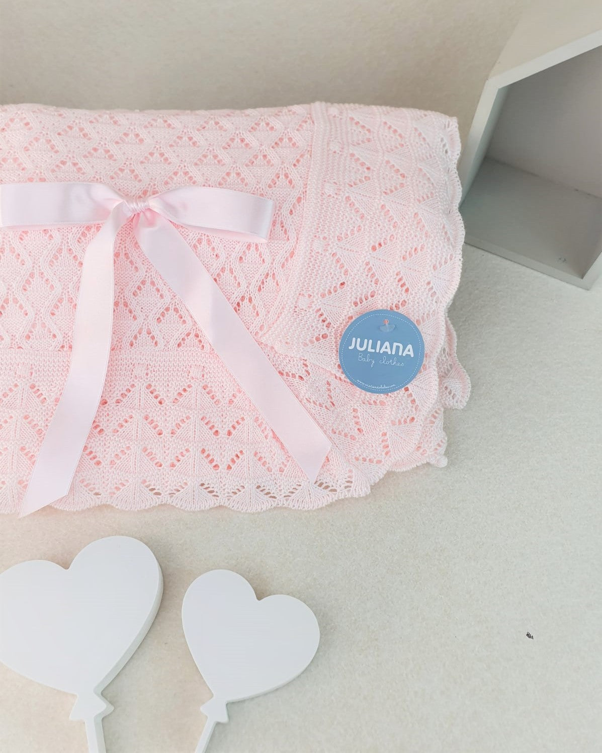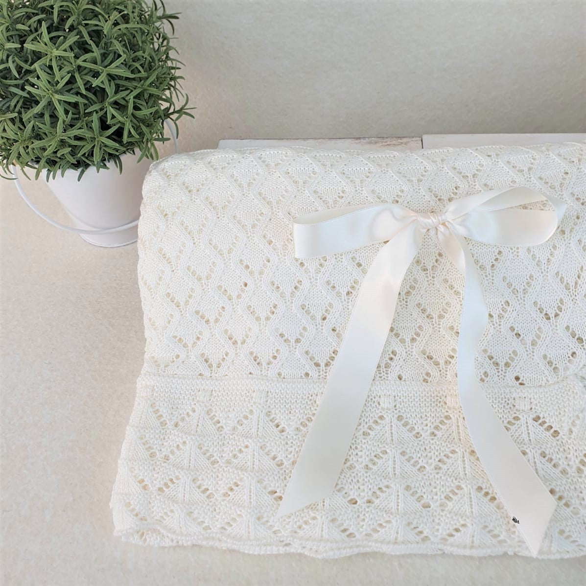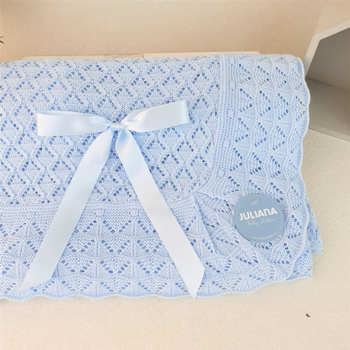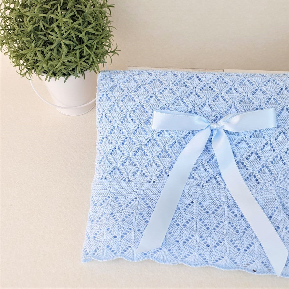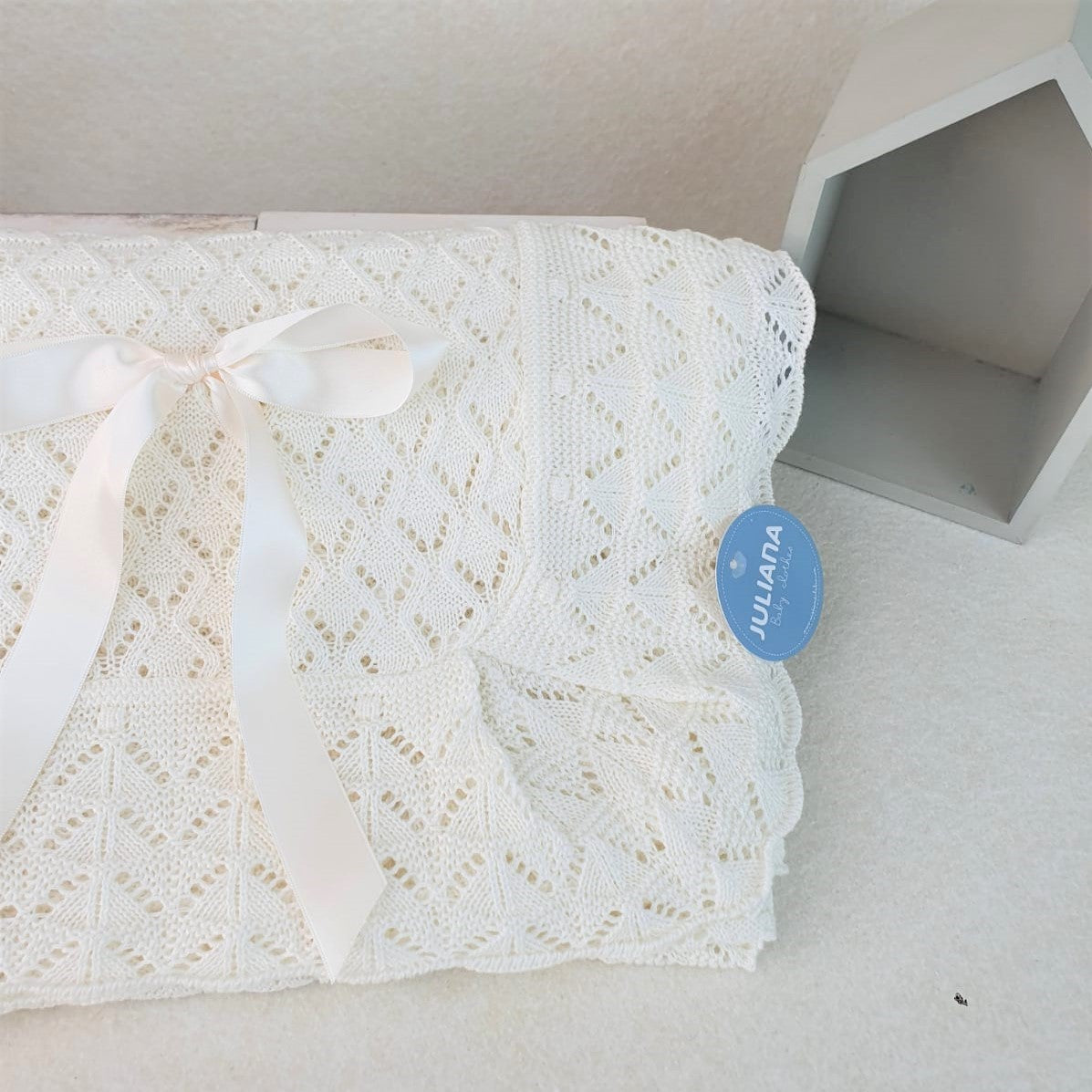 Toquilla de hilo para la estación de primavera / verano. Tiene un tacto muy agradable, y es ideal para cubrir o enrollar a tu bebé recién nacido.