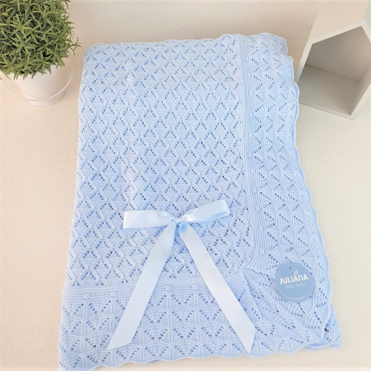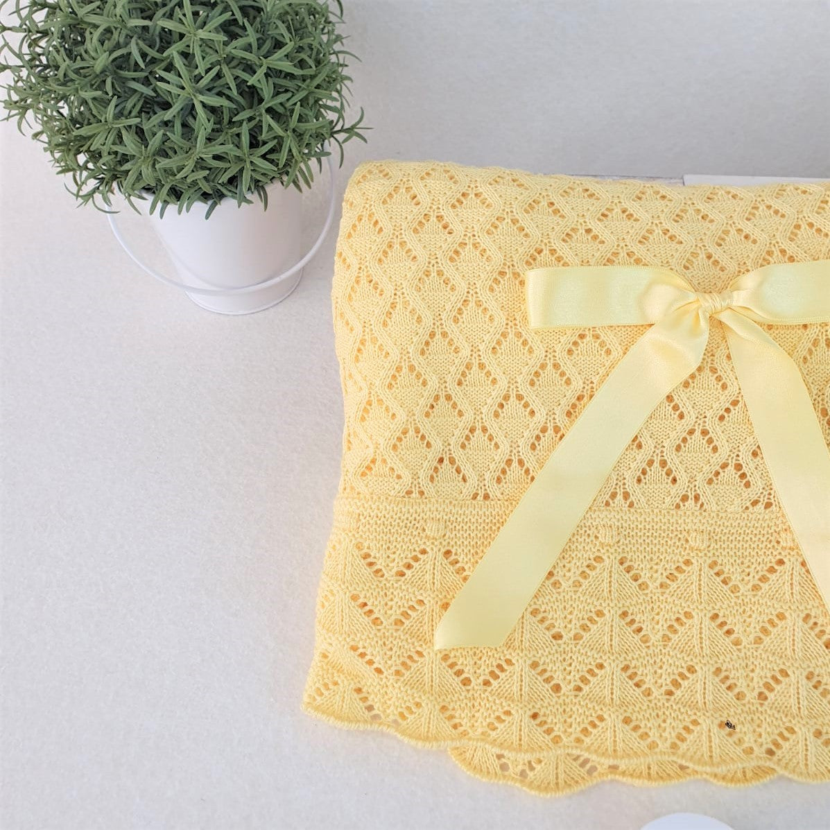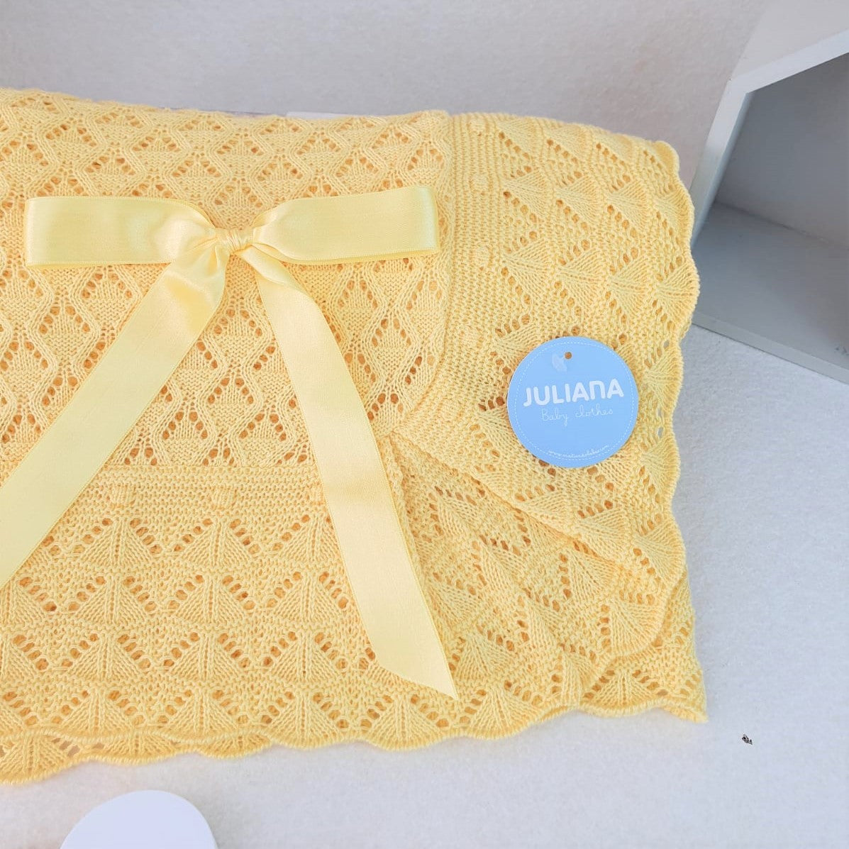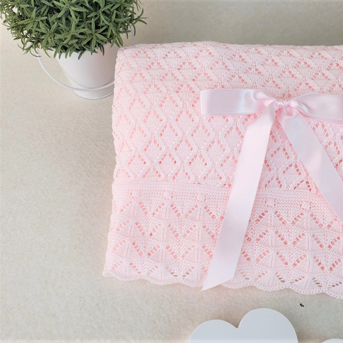 Toquilla de hilo para la estación de primavera / verano. Tiene un tacto muy agradable, y es ideal para cubrir o enrollar a tu bebé recién nacido.