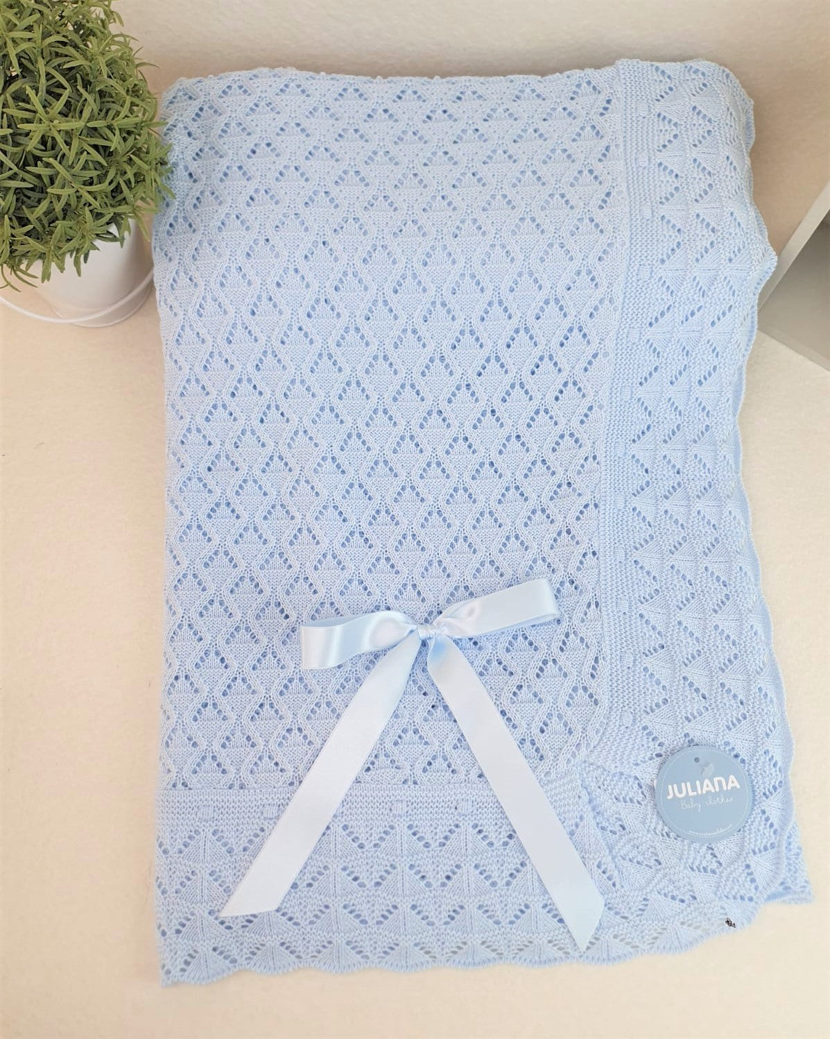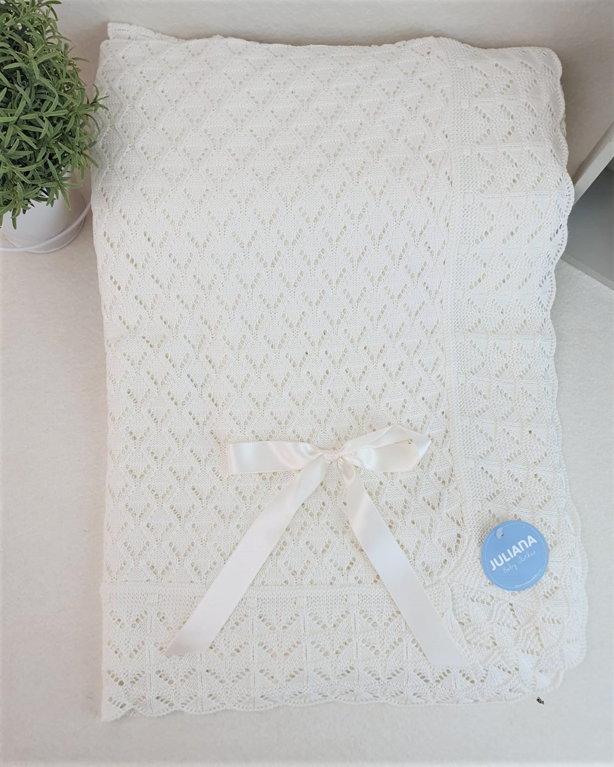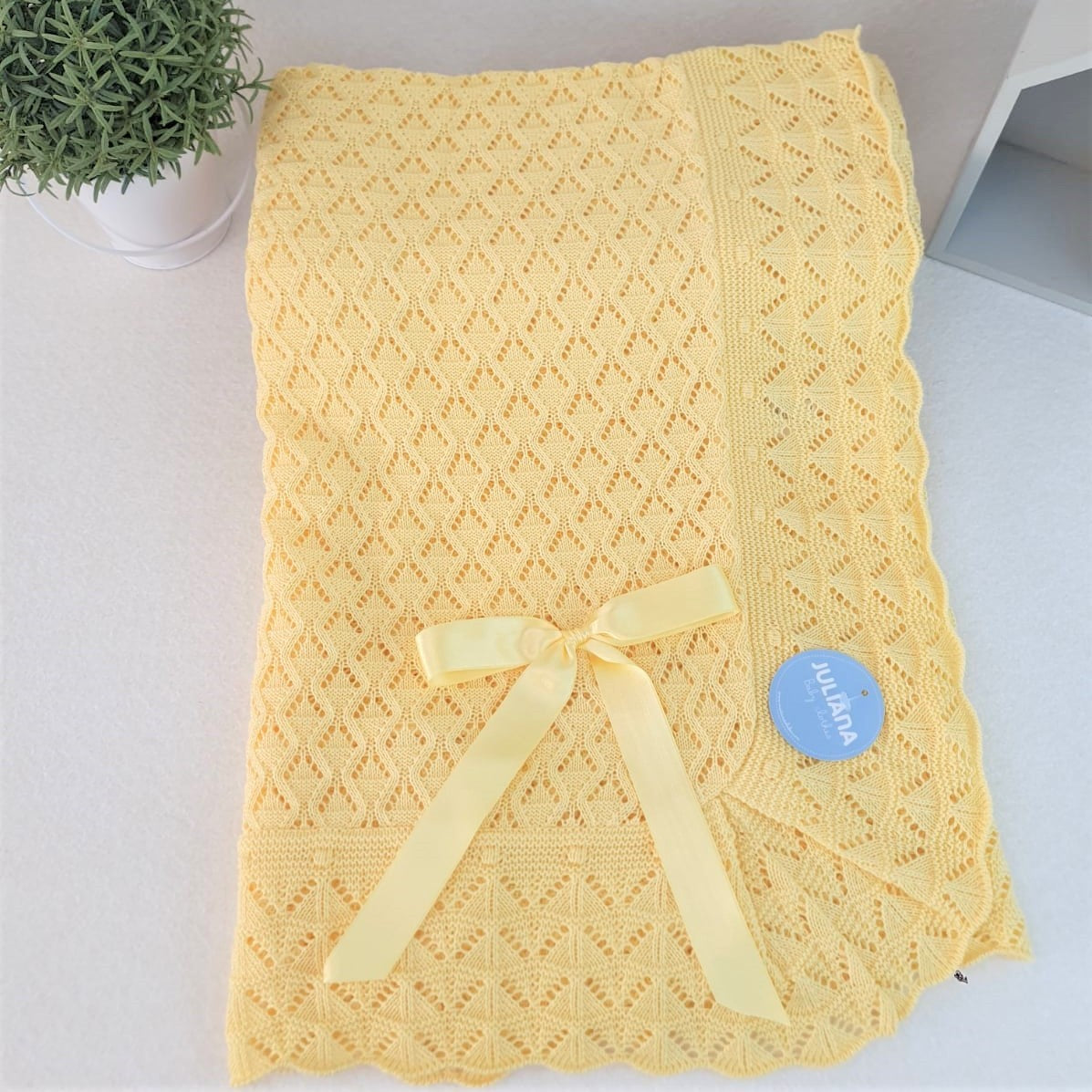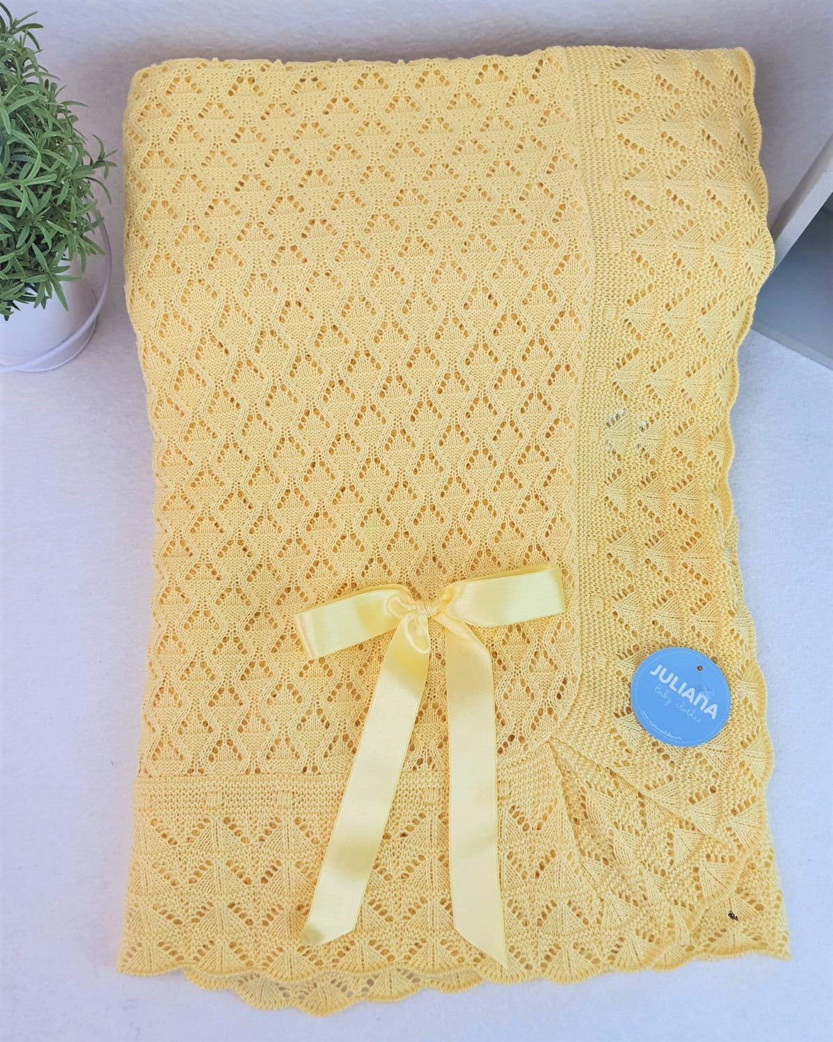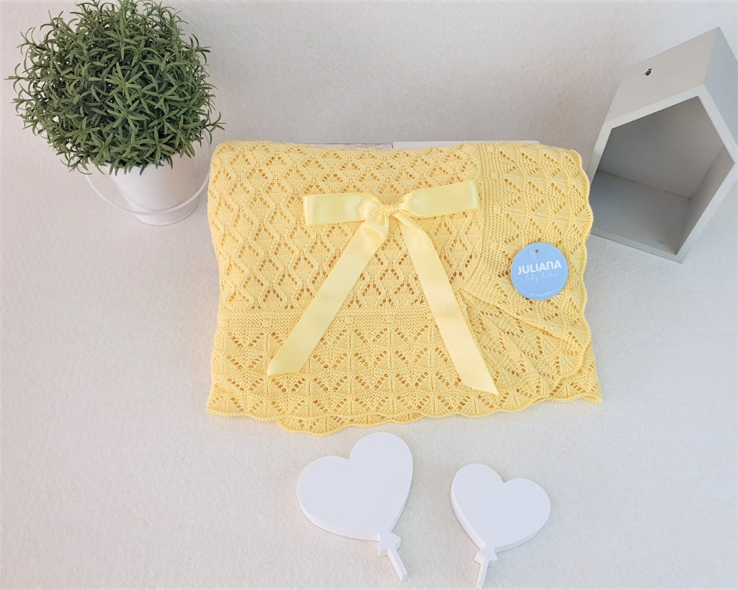 Toquilla de hilo para la estación de primavera / verano. Tiene un tacto muy agradable, y es ideal para cubrir o enrollar a tu bebé recién nacido.