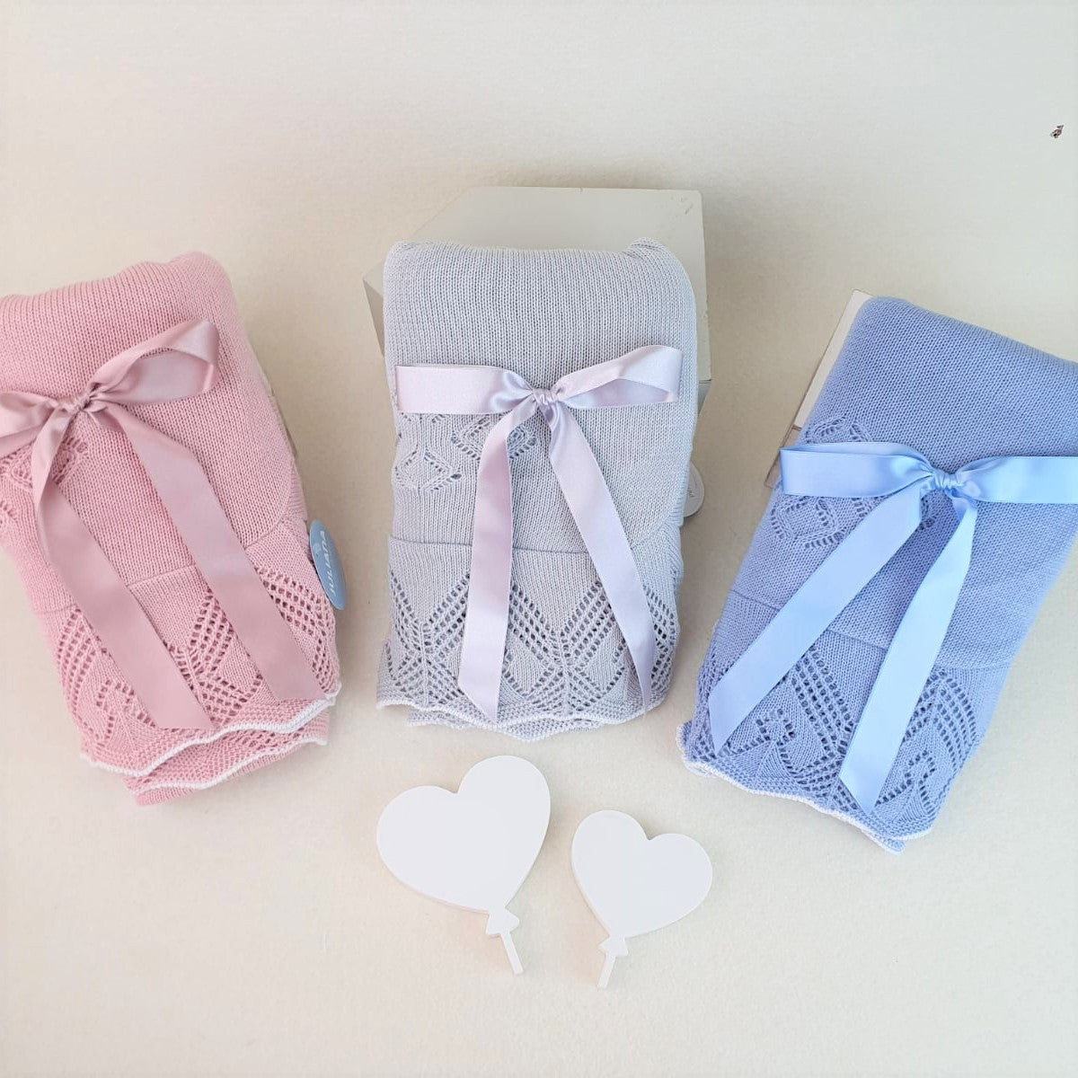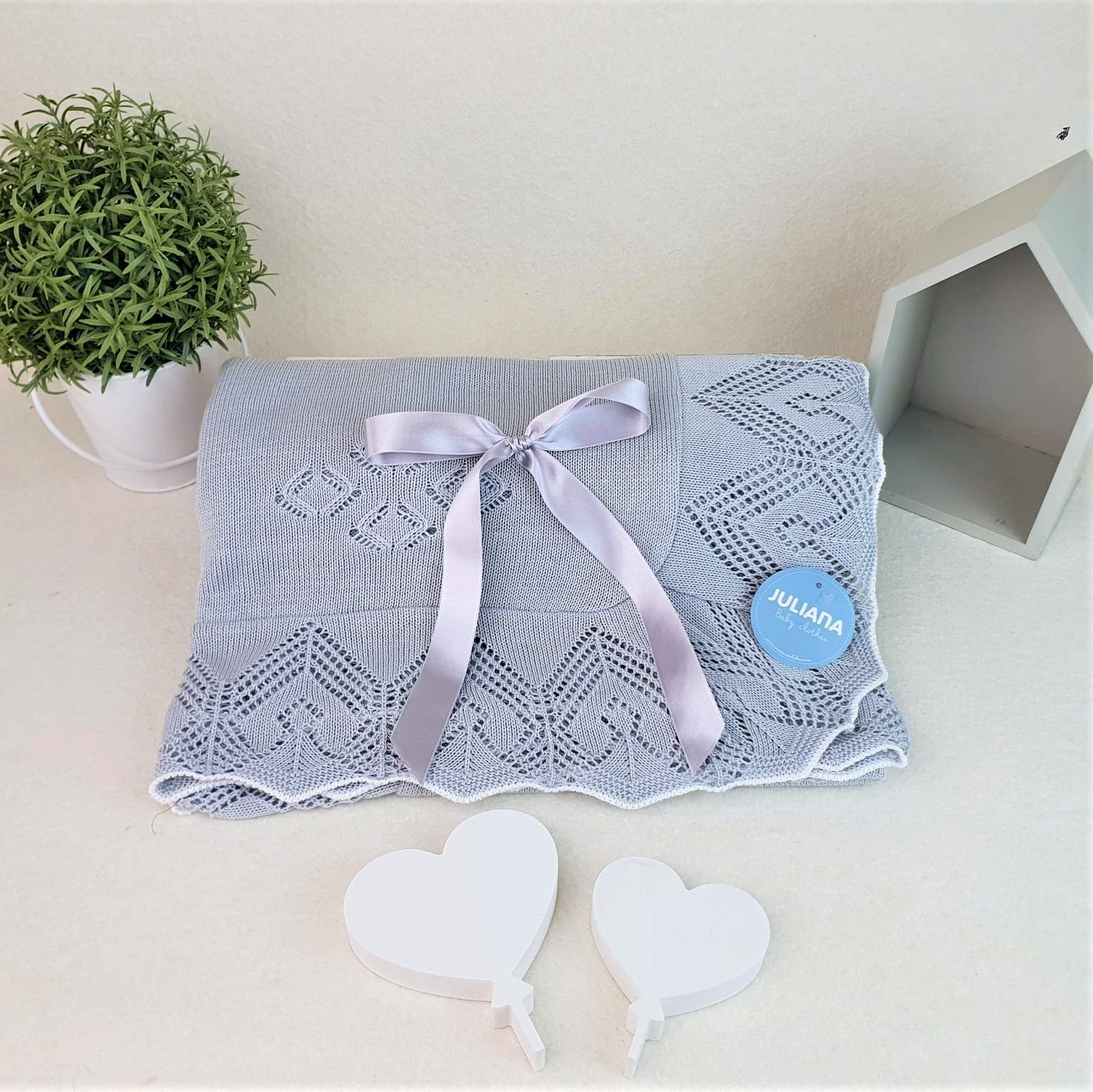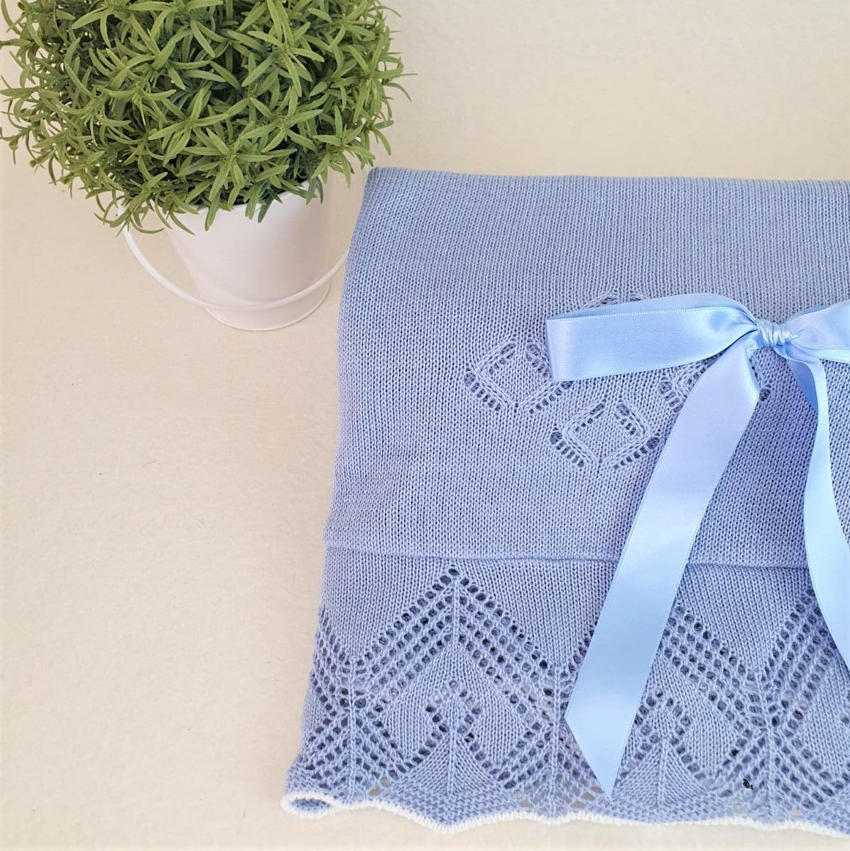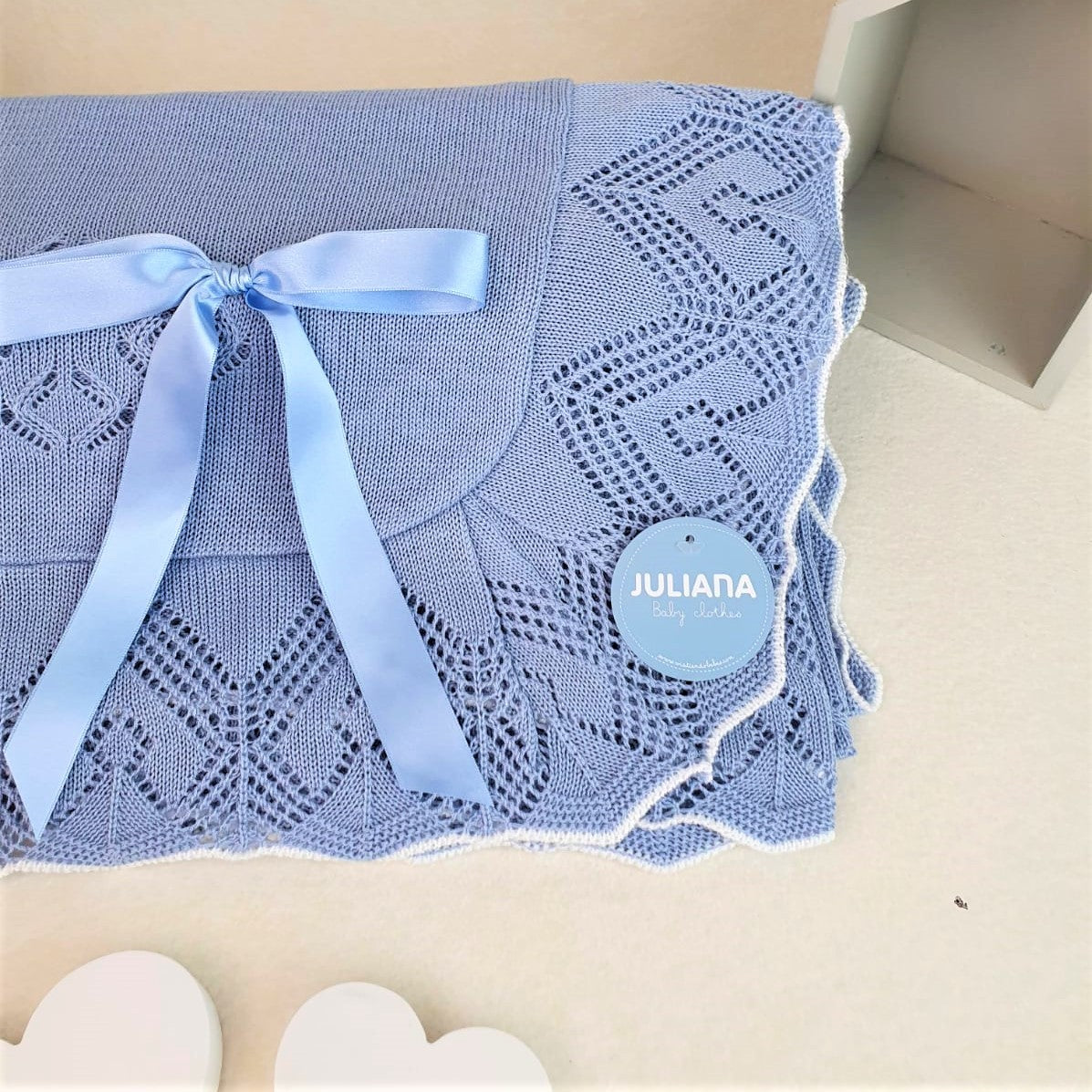 Toquilla de hilo para la estación de primavera / verano. Tiene un tacto muy agradable, y es ideal para cubrir o enrollar a tu bebé recién nacido.