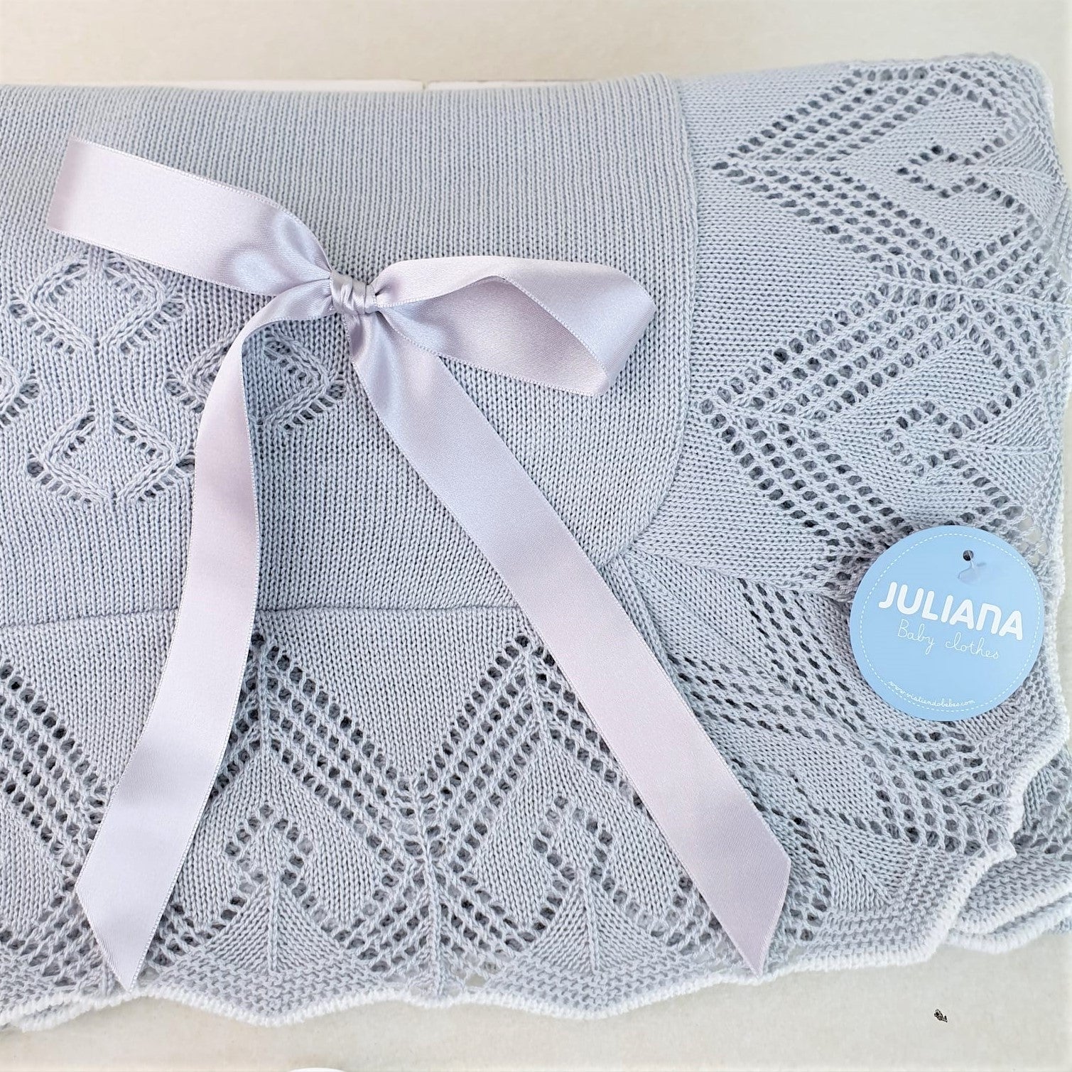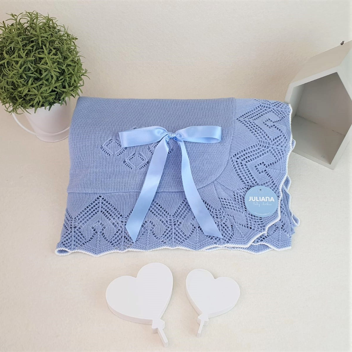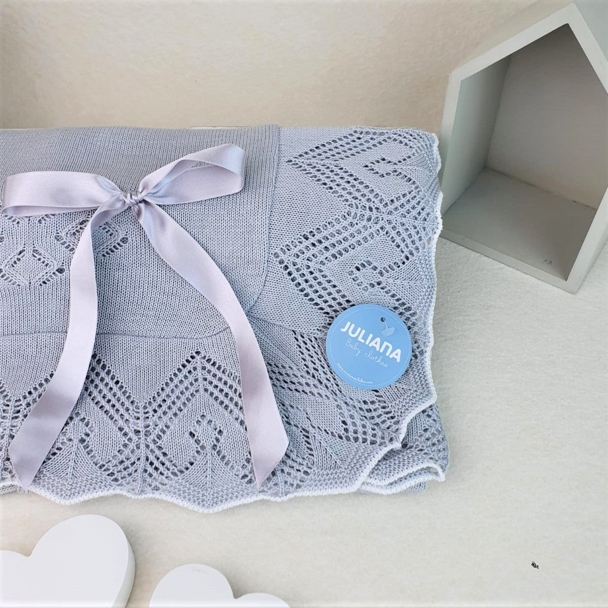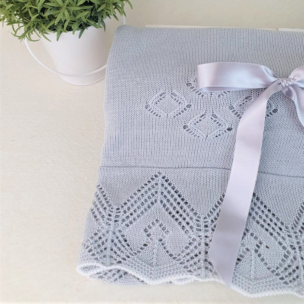 Toquilla de hilo para la estación de primavera / verano. Tiene un tacto muy agradable, y es ideal para cubrir o enrollar a tu bebé recién nacido.