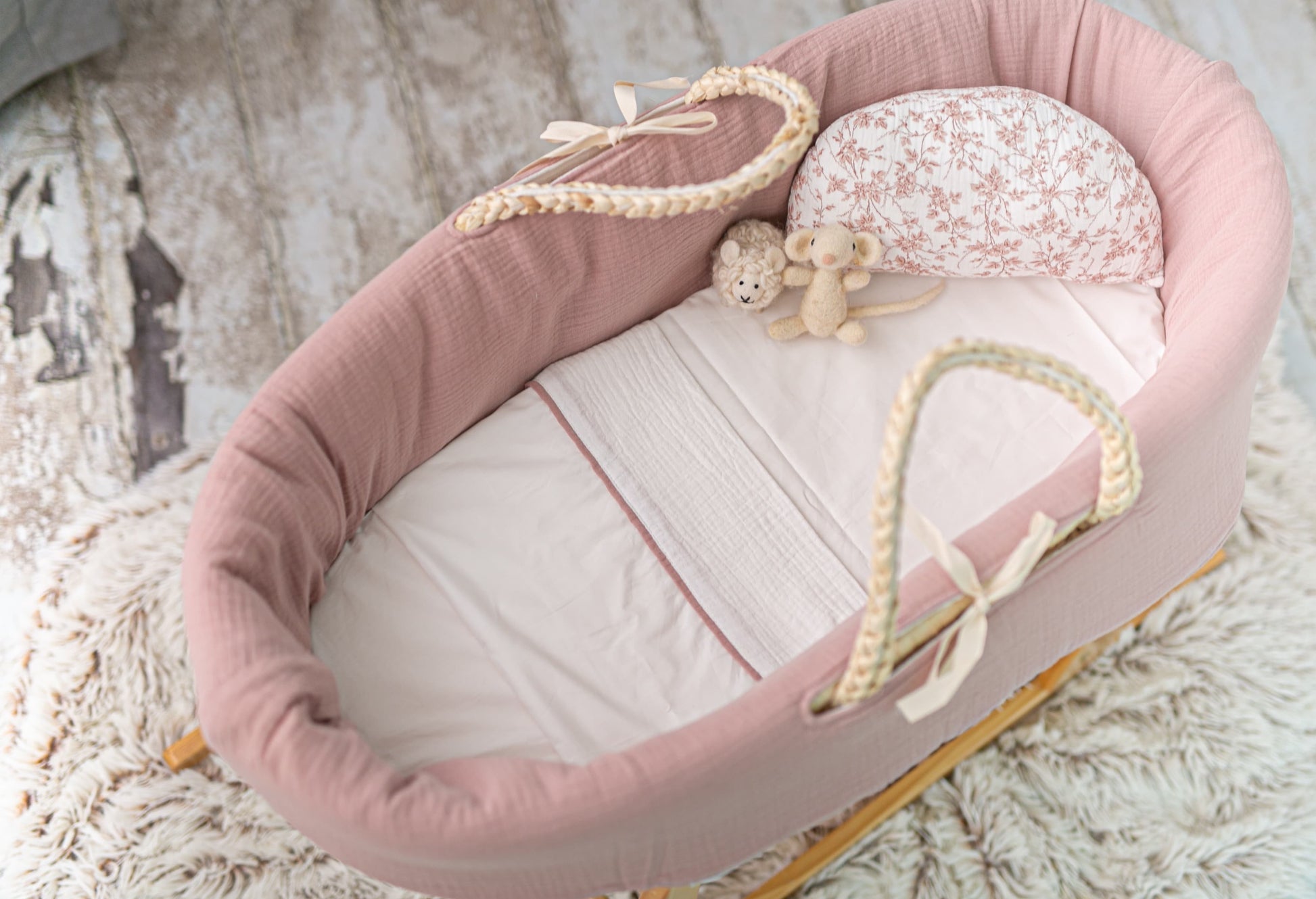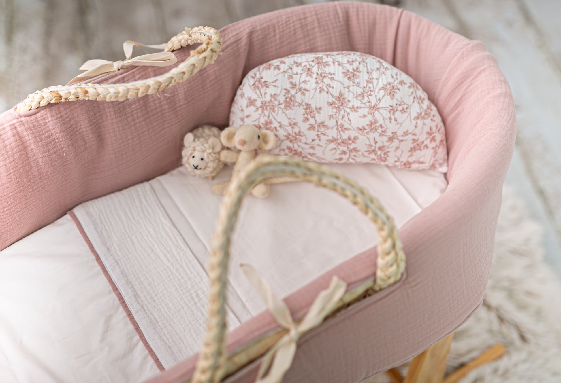 Selecciona la opción que más te guste, el moisés con su vestidura reversible y juego de sábanas a juego.