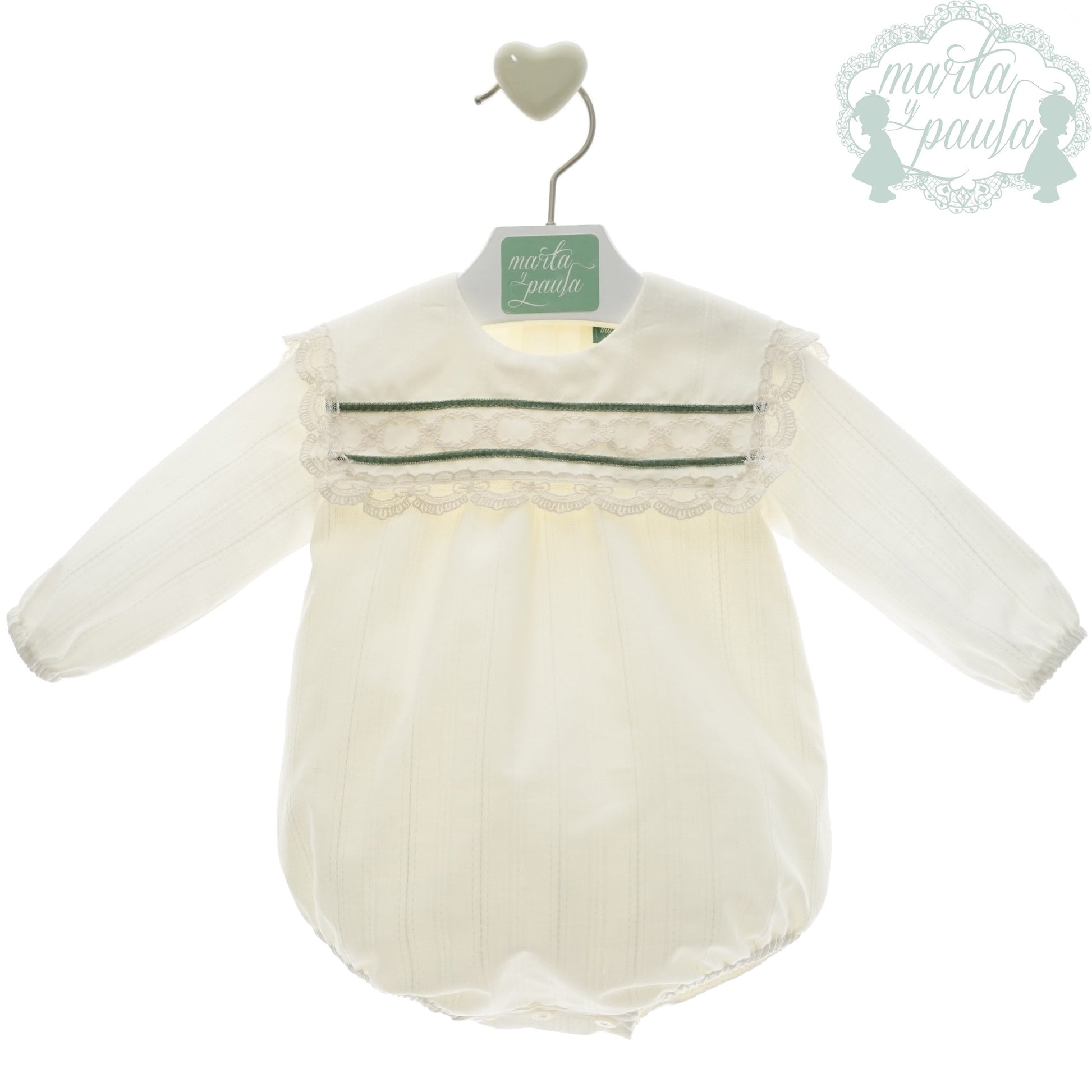 La línea en verde es lo que cambia respecto al color. En un caso es a tono conel resto del pelele y en el otro (como se aprecia en la imagen), es en verde empolvado.