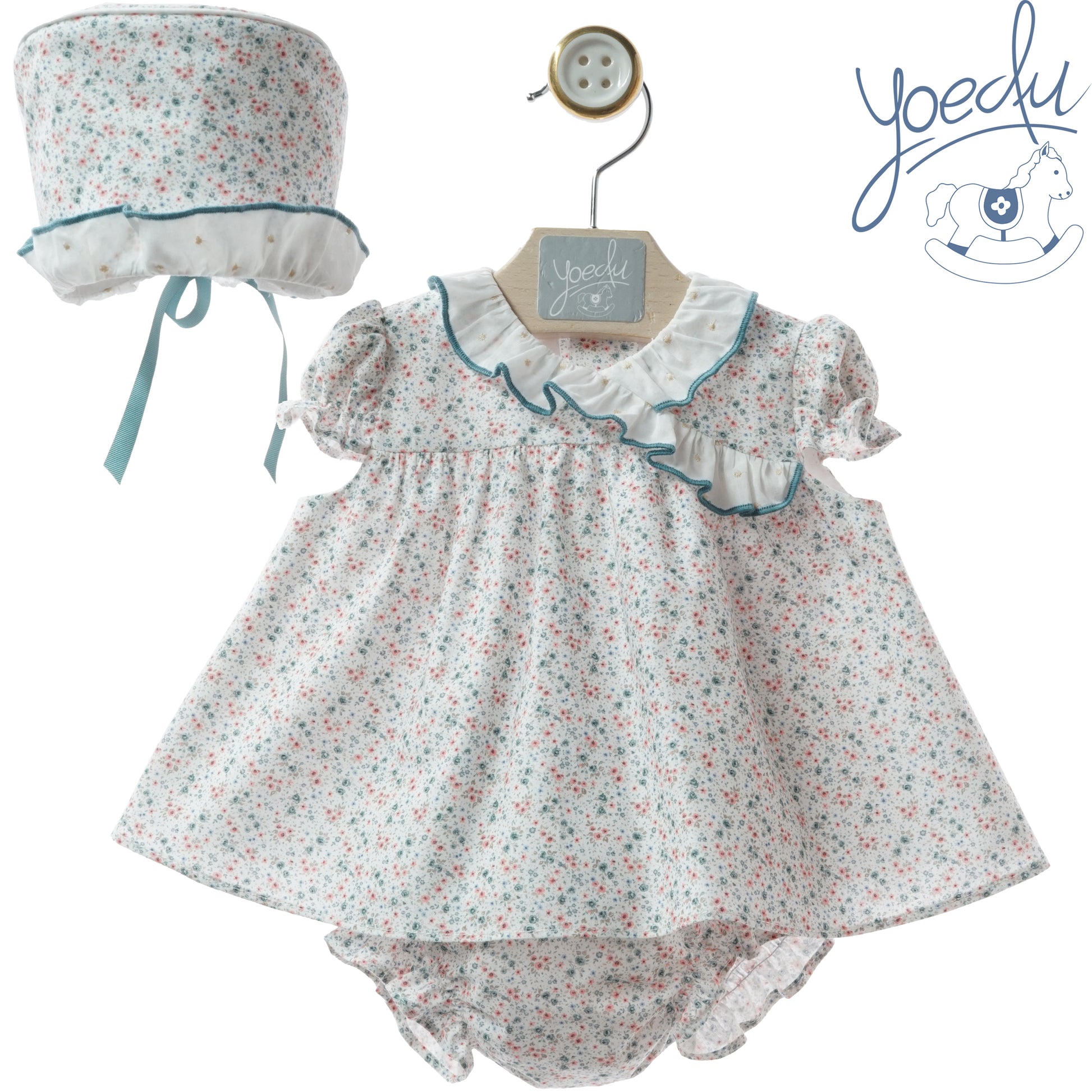 Precioso jesusín con braguita y cpaota de florecitas y volante cruzado.
