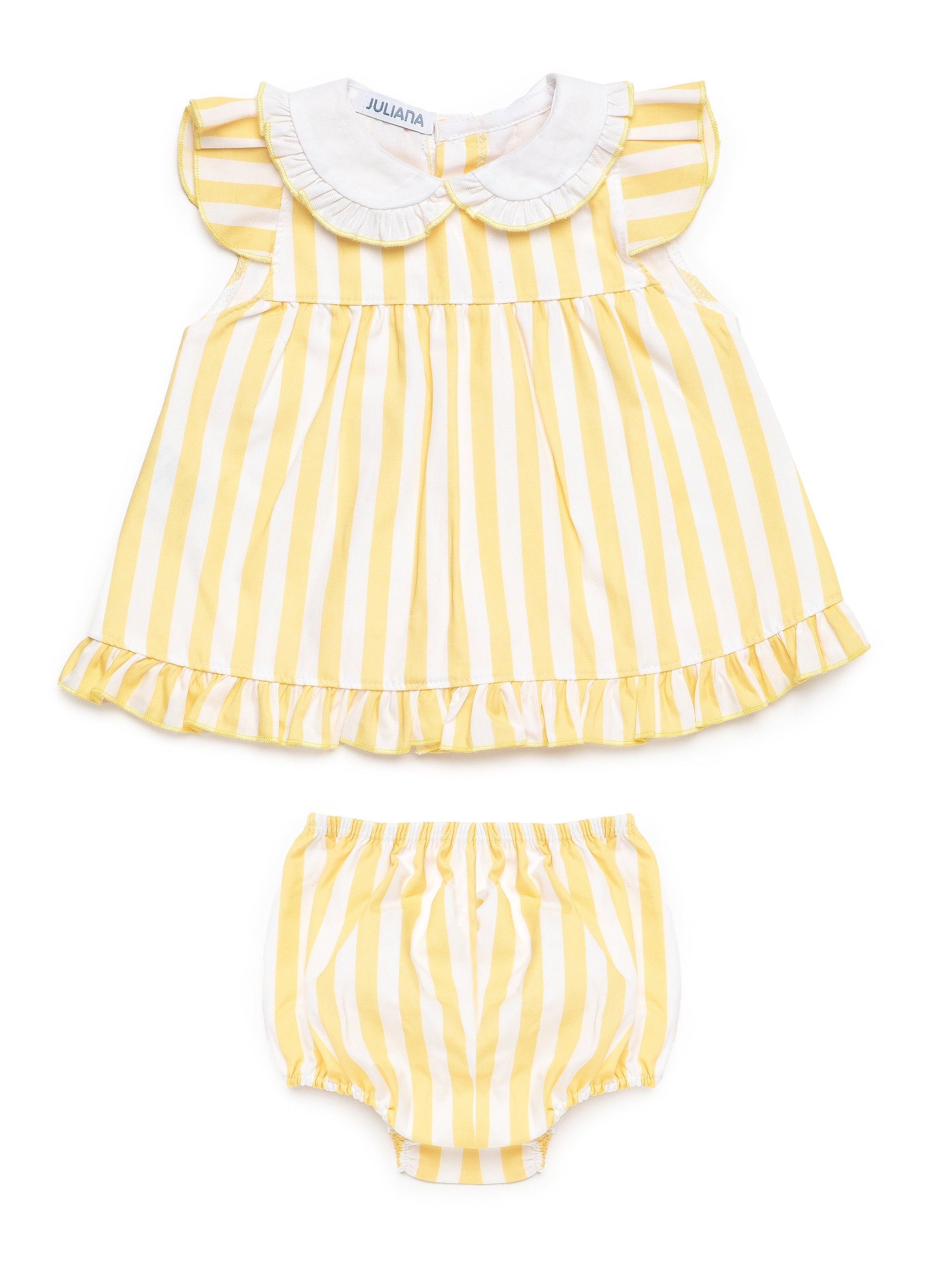 Jesusito con braguita, a rayas amarillo y blanco.